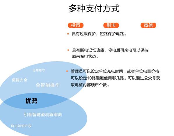 總體概述:電瓶車充電樁主要針對觀光車,電動摩托車自動車進行充電,該設(shè)備具有數(shù)碼顯示功能,清晰明了顯示充電狀態(tài),采用兩種計費方式A型計時和B型計量,管理員可以設(shè)定單位充電時間或者單位電量價格,可以設(shè)定10路通道中任何幾路通道啟動和關(guān)閉,本設(shè)備采用三種支付方式,投幣,刷卡和微信掃碼,具有斷電記憶功能,停電后刷卡支付自動進行結(jié)算,具有過載保護,短路保護等功能。