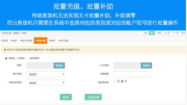 二維碼售飯機(jī)總體概述:云系統(tǒng)WIFI版聯(lián)網(wǎng)售飯機(jī)無需安裝軟件,只要能上網(wǎng)即可輕松實(shí)現(xiàn)發(fā)卡、充值、掛式、補(bǔ)卡、查詢數(shù)據(jù)、消費(fèi)、積分、微信支付、掃碼支付等,微信客戶端查詢等,支持定額消費(fèi)、計(jì)次、零售、隔空發(fā)放補(bǔ)助、自定義錢包等功能;沒有地域性的限制,可多地實(shí)時(shí)聯(lián)網(wǎng)。