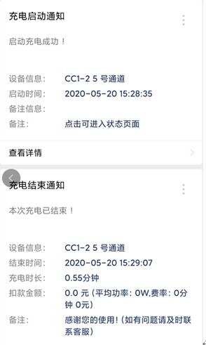 16. 微信公眾號端可查看充電狀態(tài),充電結(jié)束后會在微信號端收到充電明細(xì)與費用,充電時長等。