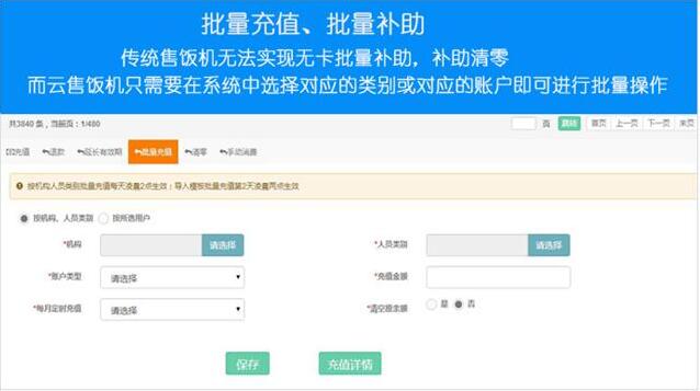 一般脫機售飯系統(tǒng)需要在電腦上安裝軟件及數(shù)據(jù)庫,基于PC端來調(diào)試參數(shù)及查看數(shù)據(jù),云消費系統(tǒng)免去了傳統(tǒng)消費系統(tǒng)需要安裝軟件、搭建服務器的傳統(tǒng)模式,登錄網(wǎng)站即可輕松管理所有區(qū)域的消費機,徹底告別由于系統(tǒng)中病毒、數(shù)據(jù)庫損壞、硬盤損壞等導致數(shù)據(jù)丟失的情況;