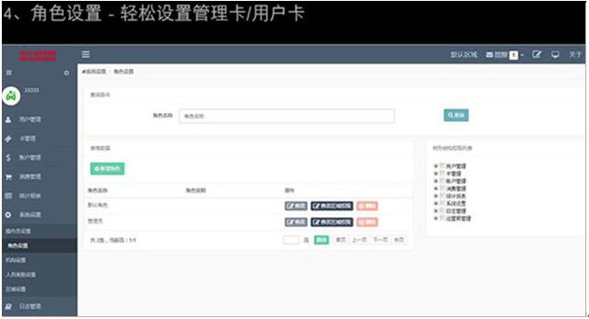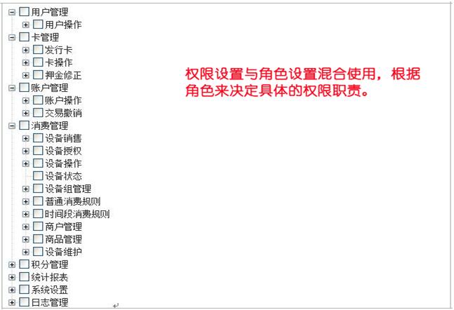 ■ 圖七、角色設(shè)置是用來(lái)分配管理員、收銀員、超級(jí)管理員之間的不同職責(zé)的,如管理員具有管理設(shè)備的、參數(shù)的權(quán)限,收銀員僅僅具有收銀開(kāi)戶(hù)的權(quán)限等。簡(jiǎn)單說(shuō)就是不同人員具有的分工.